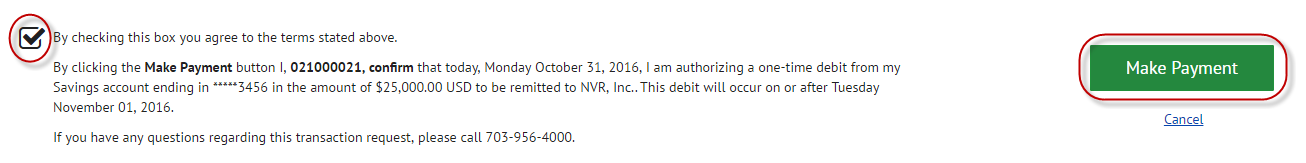 the checkbox to agree to the Terms and Conditions and then click the Make Payment button to complete the